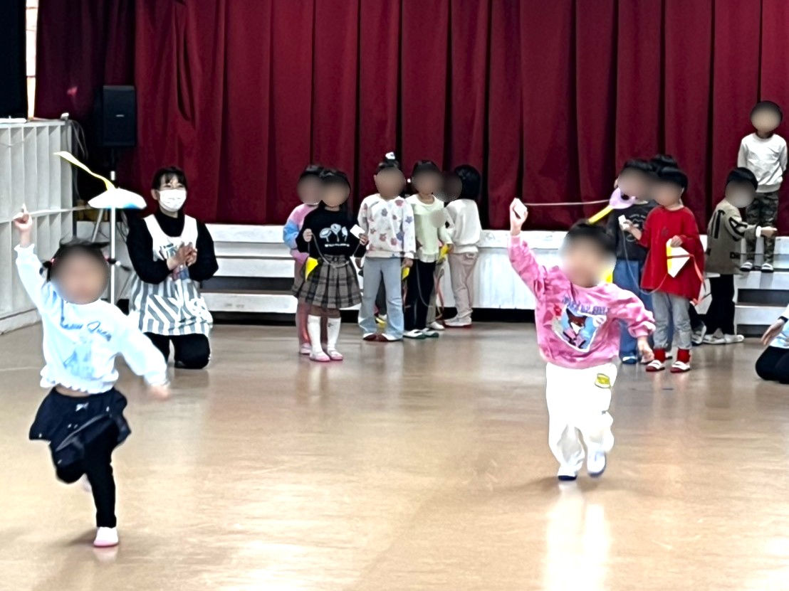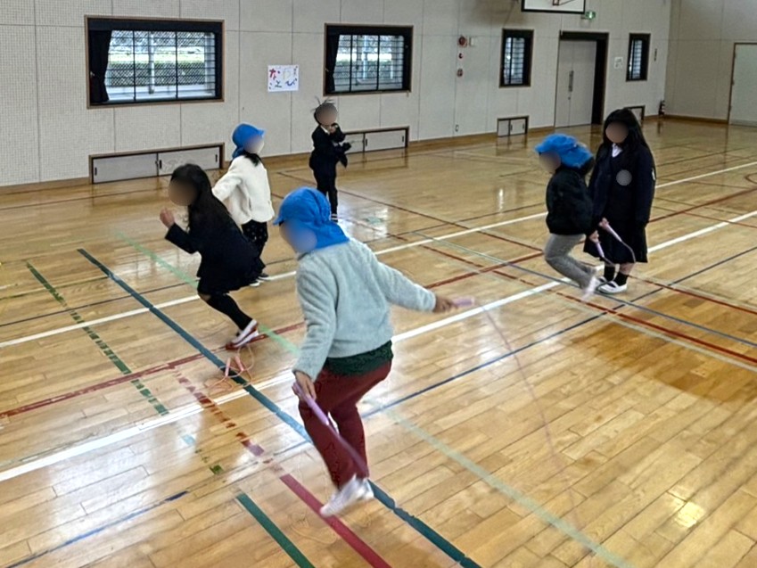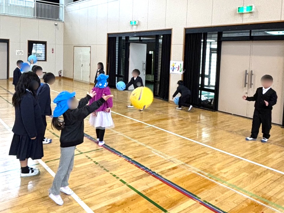 体育館では『なわとび』『ボール』など小学校でやっている遊びを一緒にやってみました!