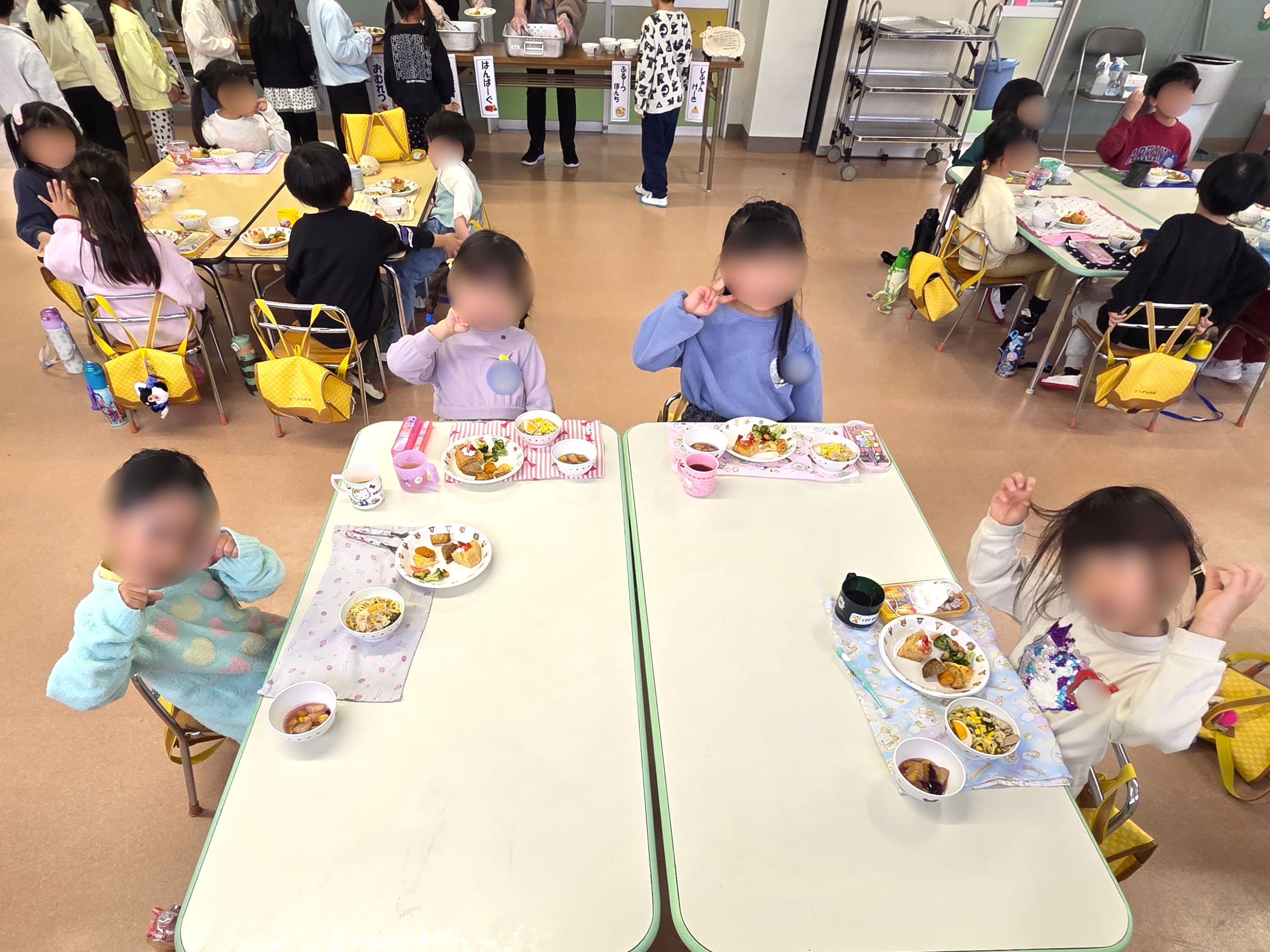先日、ふじ組さんの卒園を記念して年長・年中合同でバイキング給食が開催されました。
